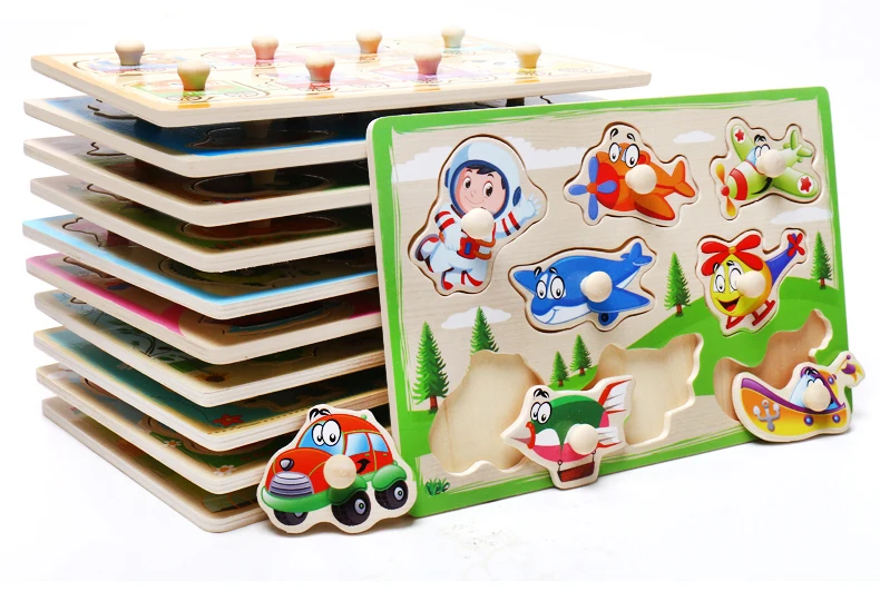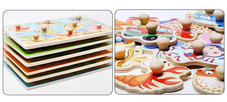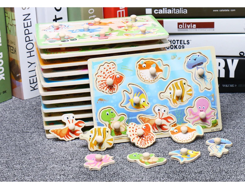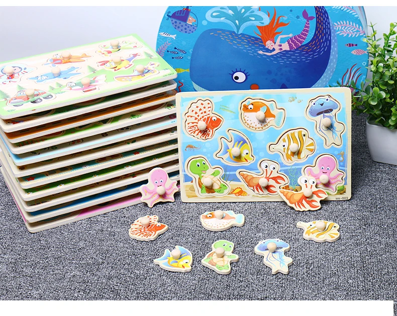 Baby Toys Montessori Wooden Puzzle Cartoon Vehicle Marine Animal Puzzle 12 Styles Board Set Educational Wooden Toy Child Gifts
